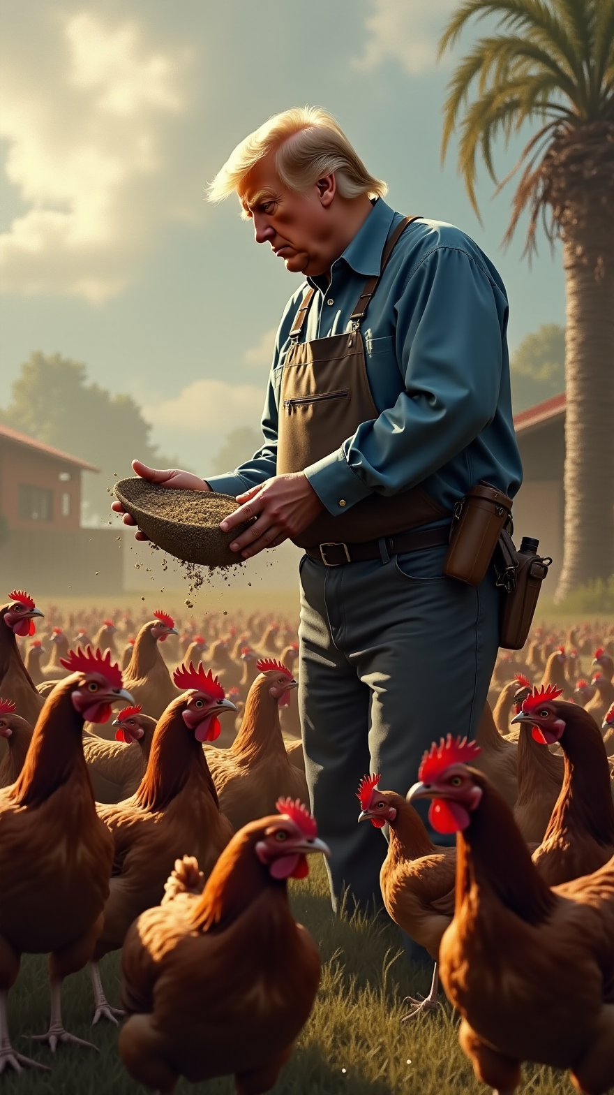 A very serious-looking farmer tries to calmly feed his flock, but the chickens react like overdramatic divas—squawking, side-eyeing, and crowding around him as if they’re grilling him at a press conference. Fast zooms on their shocked faces, goofy sound effects, and slow-motion feed drops turn this peaceful farm moment into pure comedic chaos.