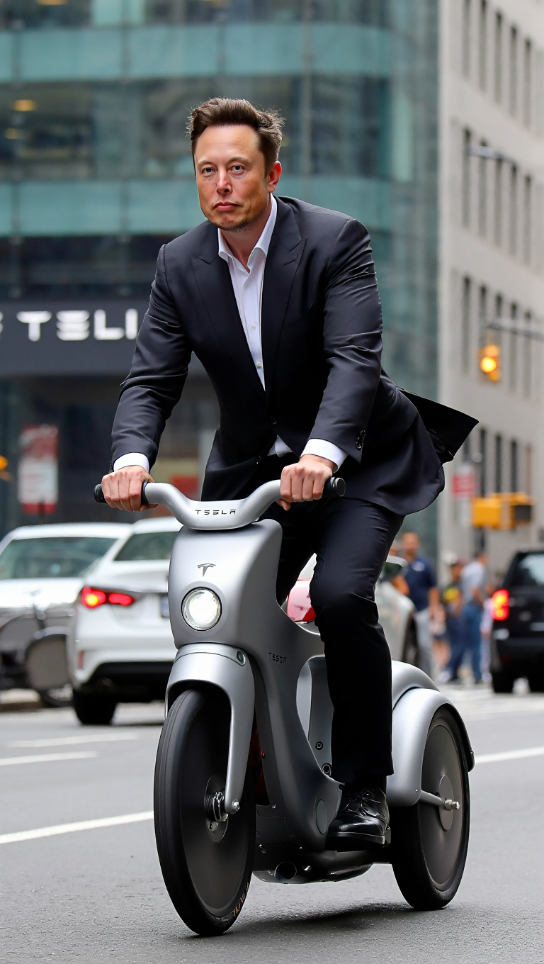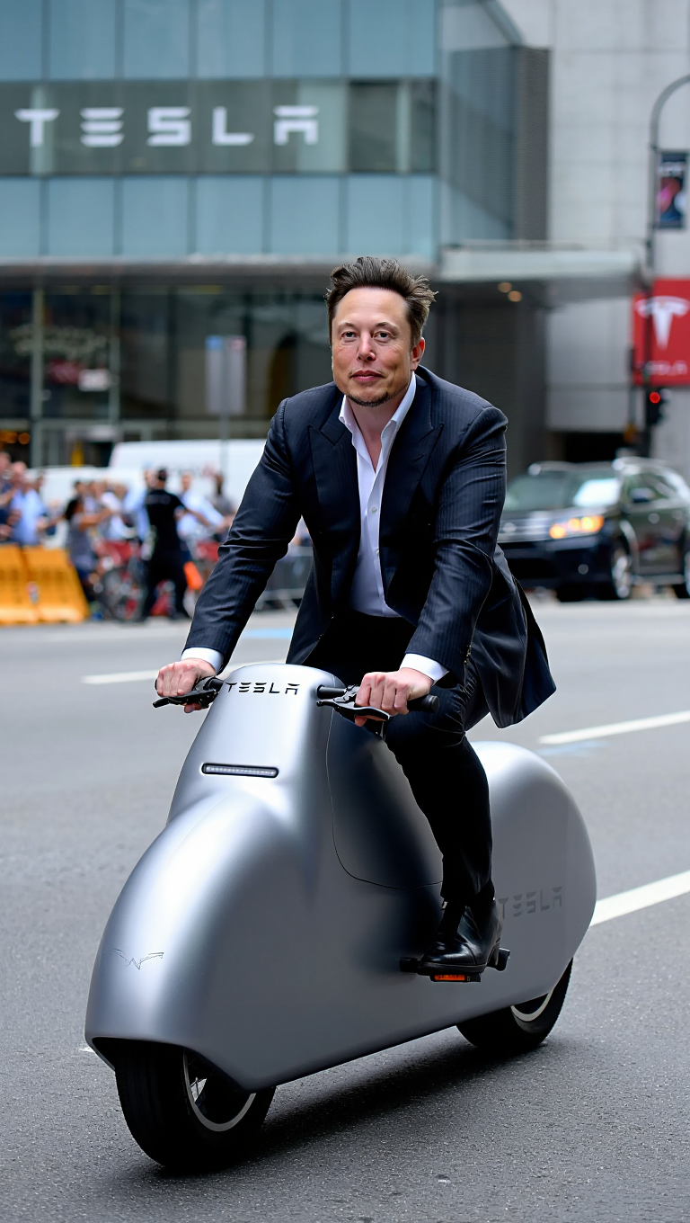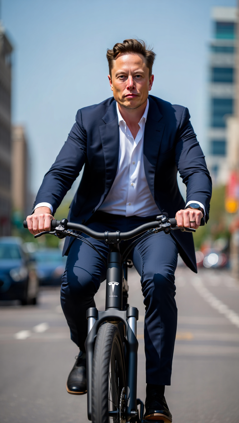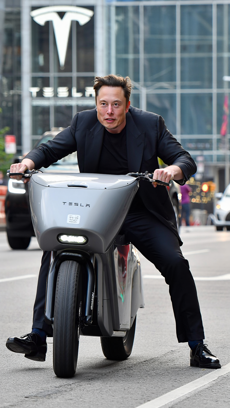 Elon Musk spotted riding a Tesla bike to work — sleek, silent, and all-electric.