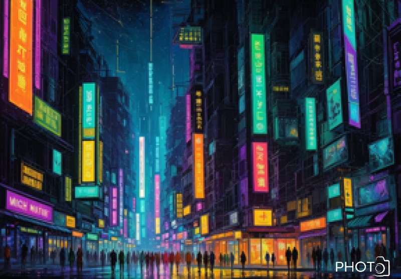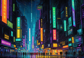 An intricate double exposure digital art piece featuring a close-up of a person's eye superimposed onto a vibrant cyberpunk city street. Inspired by Yuumei, this masterpiece boasts a technicolor palette and glowing holographic elements, capturing a dream-like atmosphere reminiscent of "The Matrix." The artwork showcases elaborate details and bright city lights, creating a captivating visual narrative that immerses viewers in a futuristic world.